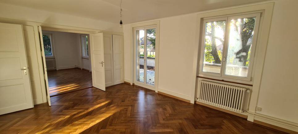 Situé à l'est d'Yverdon-les-Bains dans un écrin de verdure, ce bel appartement vous surprendra par sa luminosité, ses grandes pièces à vivre et ses volumes typiques des années 30. De magnifiques parquets fraîchement poncés et vitrifiés en 2022, vous apporteront chaleur et cachet.