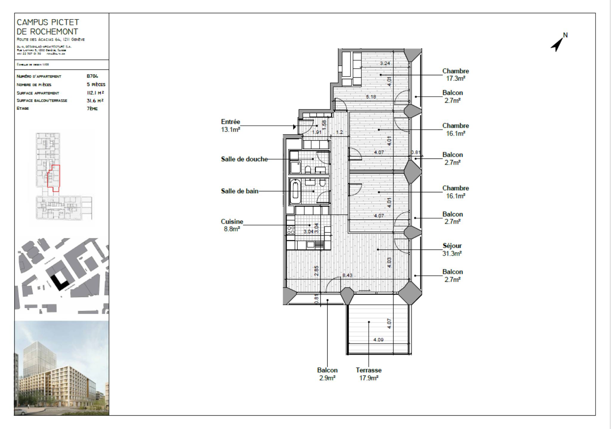 Situé au septième étage d’un immeuble neuf dans le quartier du PAV, cet appartement de 5 pièces allie le confort moderne à des finitions haut de gamme dans un cadre urbain en plein essor.