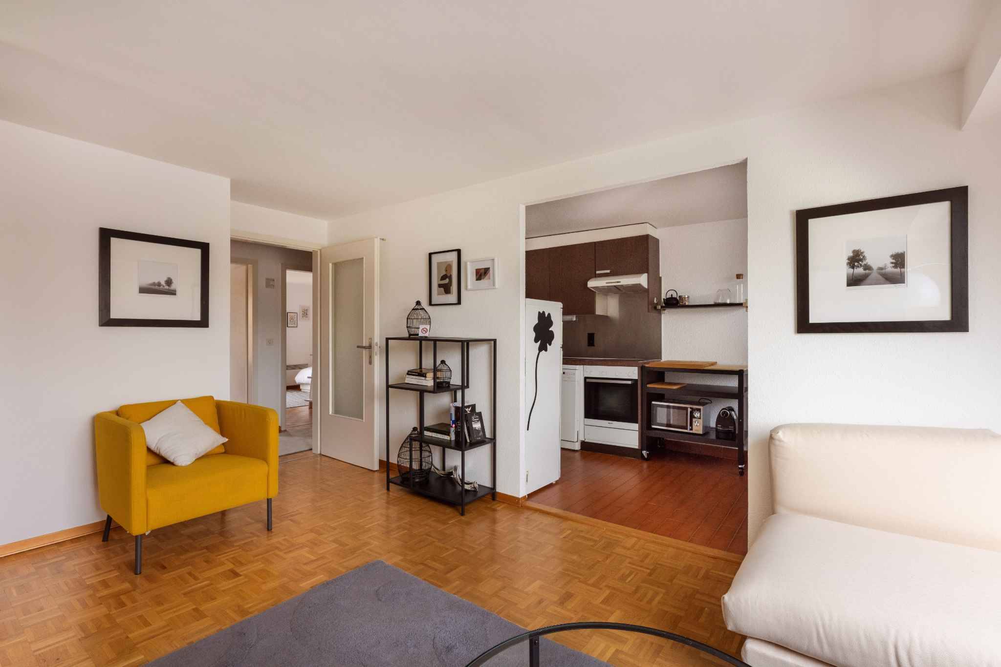 Le bien ce compose, d'un hall d'entrée, d'une cuisine équipée, d'un séjour, de deux chambres à coucher et d'une salle de douche avec toilettes. Le tout meublé dans un style contemporain et chaleureux.
