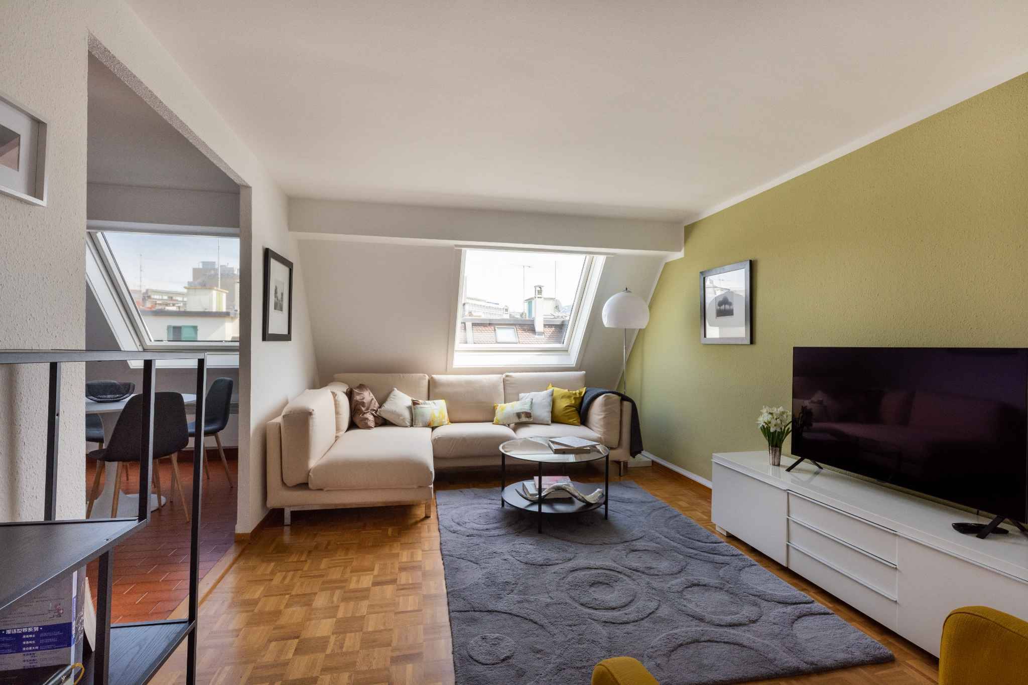 Lumineux 4 pièces traversant, situé au 6ème et dernier étage d'un immeuble des années 1900. Proche de toutes les commodités et des transports publics.