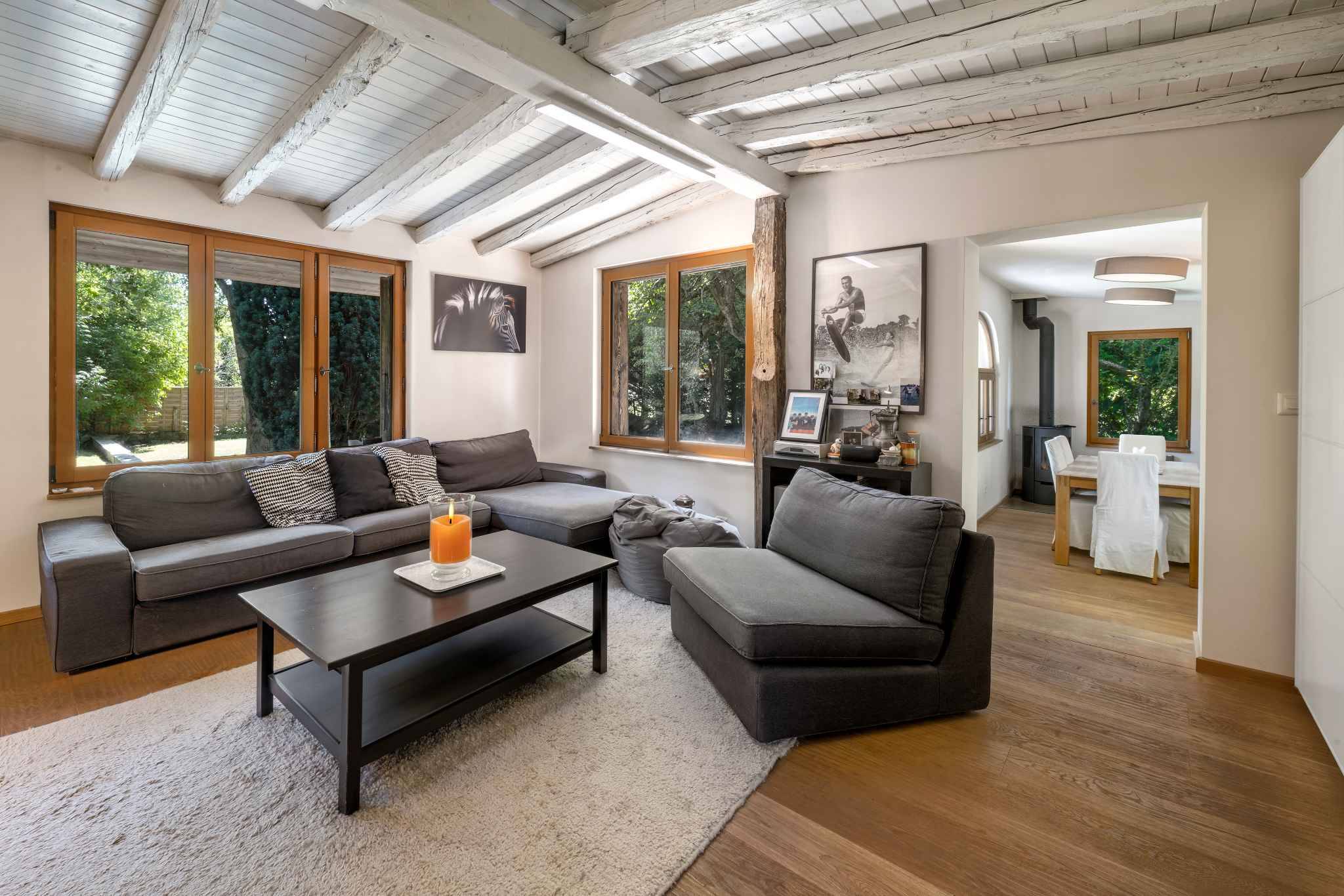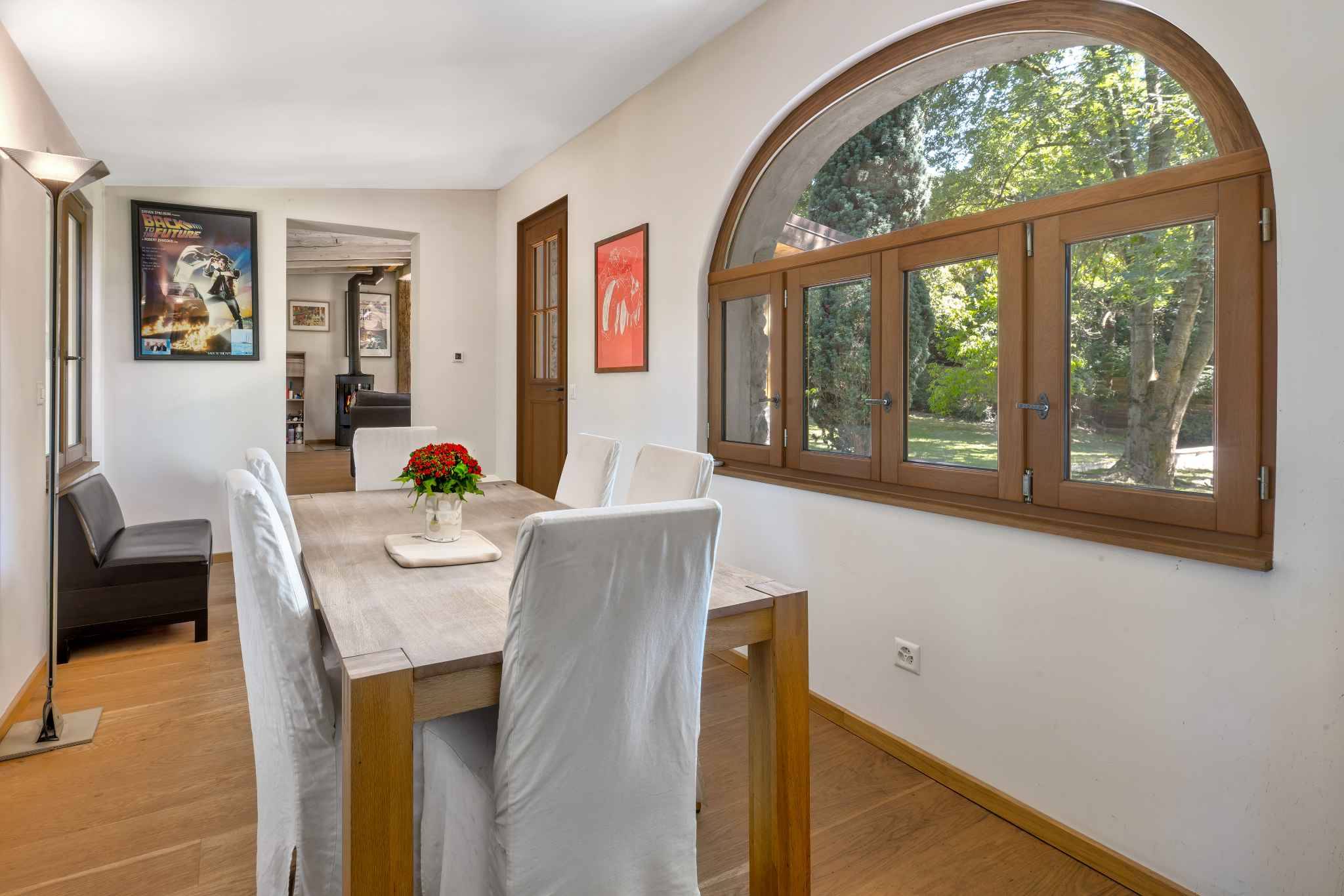 Entièrement restaurée en 2011 avec des matériaux de qualité, ce bien est un réel coup de cœur dès son entrée et le charme opère également avec ses extérieurs exclusivement privatifs composés d'un magnifique jardin, d'une piscine et d'un agréable pool house avec notamment un vestiaire et des toilettes, sur une parcelle de 1'272 m² en zone agricole.