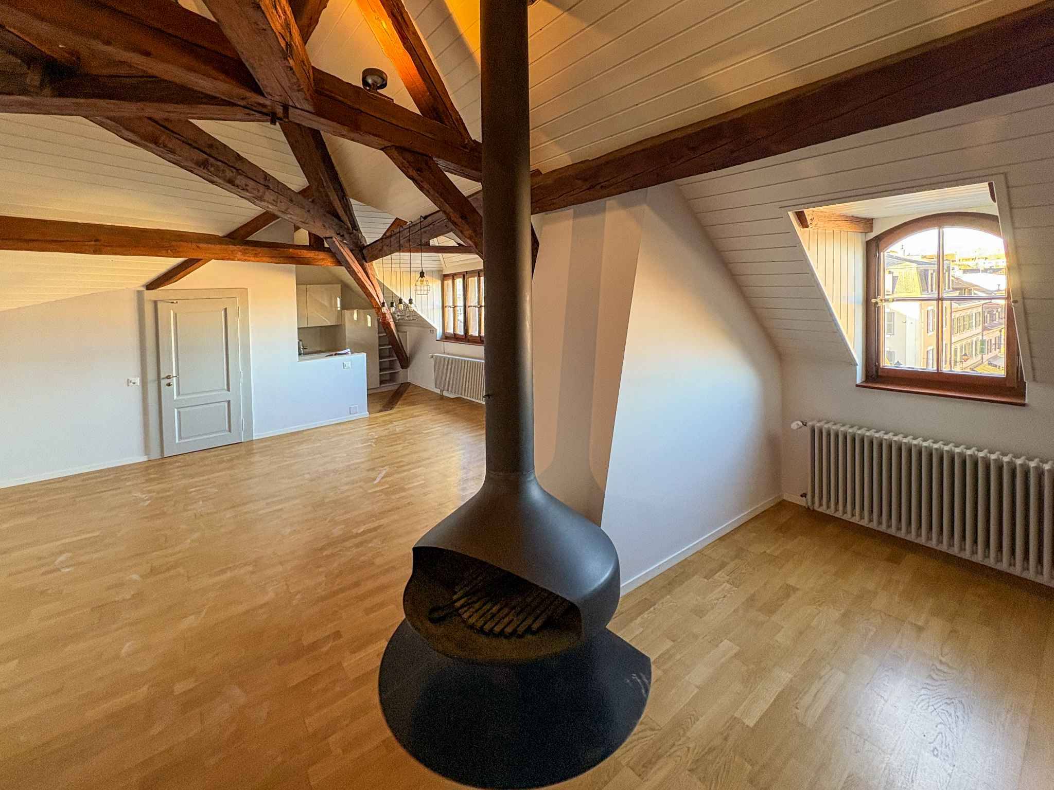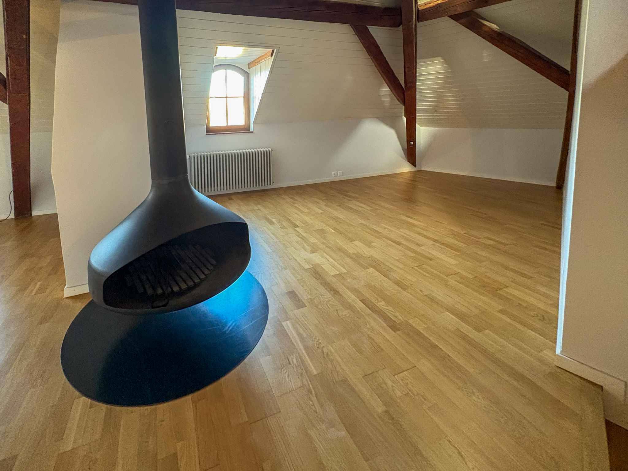 Une grande cave et un box en sous-sol en sus au loyer de CHF 200.-/mois complètent ce bien.