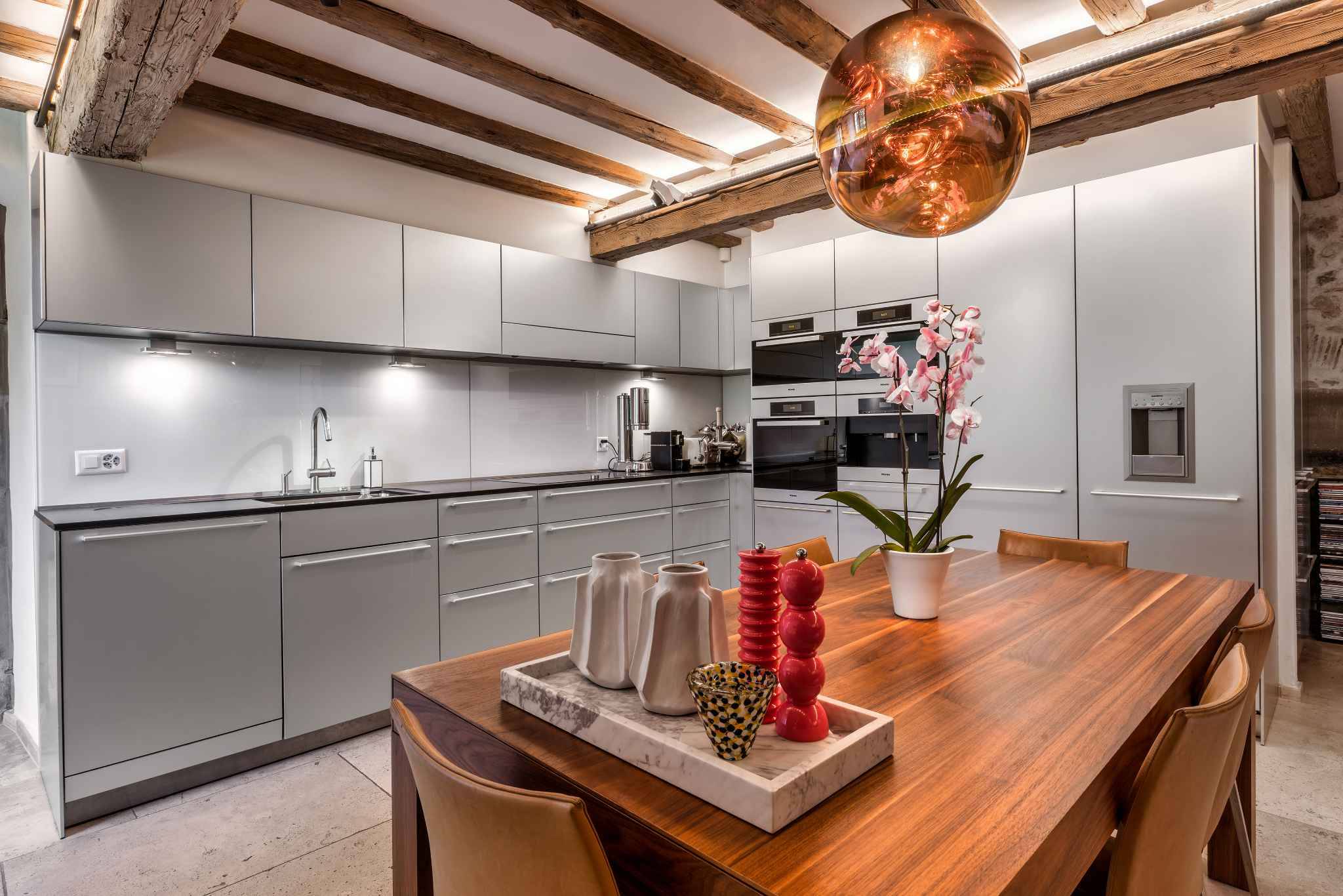 La partie jour bénéficie d'une cuisine ouverte avec îlot central, d'un spacieux séjour et l'accès à la loggia exposée sud/ouest.