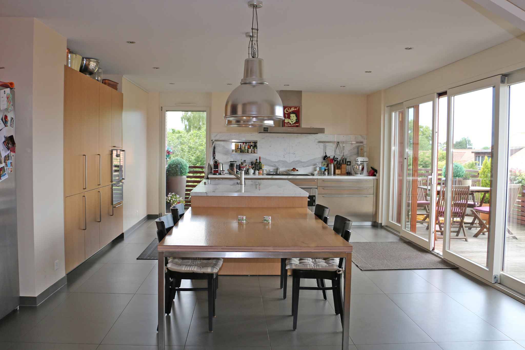 La partie jour se compose d’un hall d'entrée avec rangements, une grande cuisine ouverte entièrement équipée avec accès balcon/terrasse en enfilade, une salle à manger et un séjour et un coin bureau avec balcon.