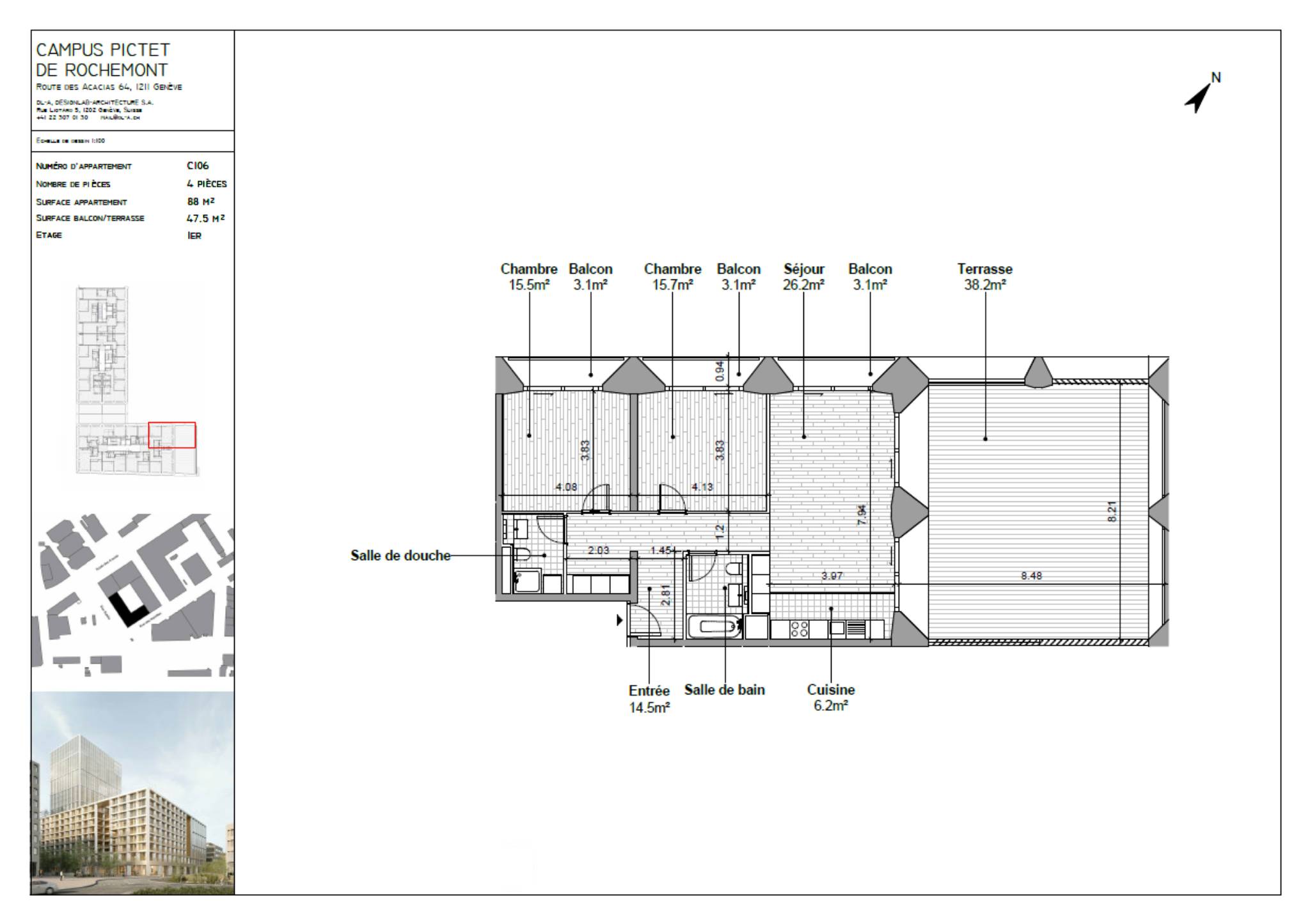 Situé au premier étage d’un immeuble neuf dans le quartier du PAV, cet appartement de 4 pièces allie le confort moderne à des finitions haut de gamme dans un cadre urbain en plein essor.