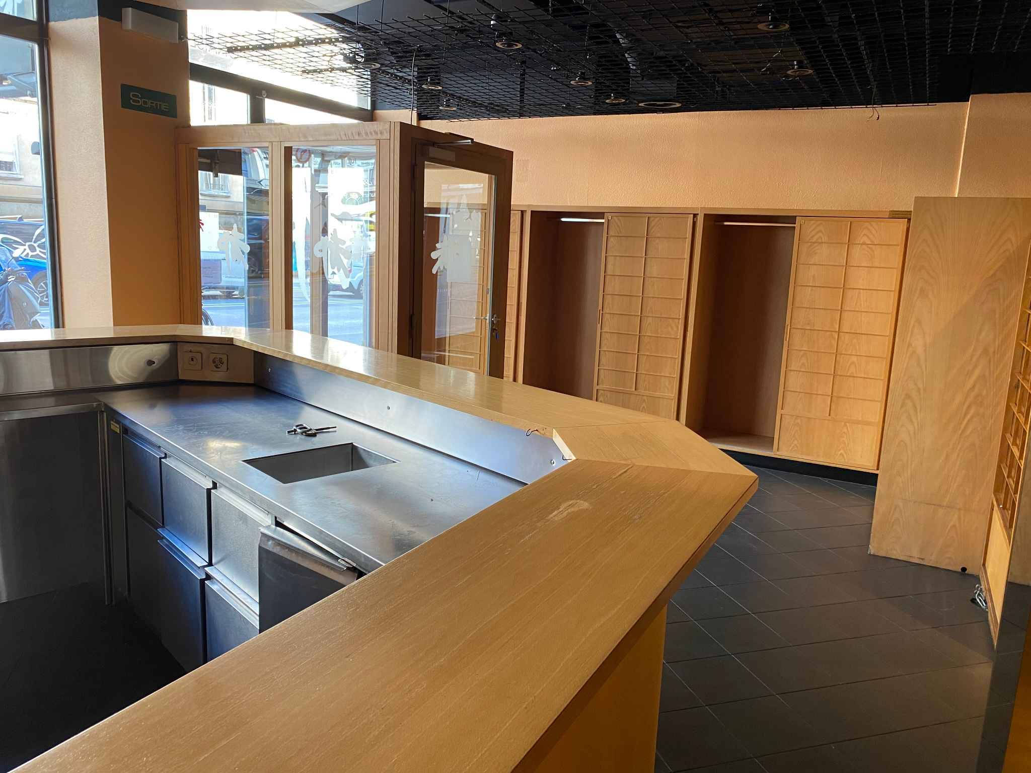 L'arcade se compose d'un hall d'accueil, d'un joli espace pour la clientèle, d'un coin cuisine et de toilettes séparées.