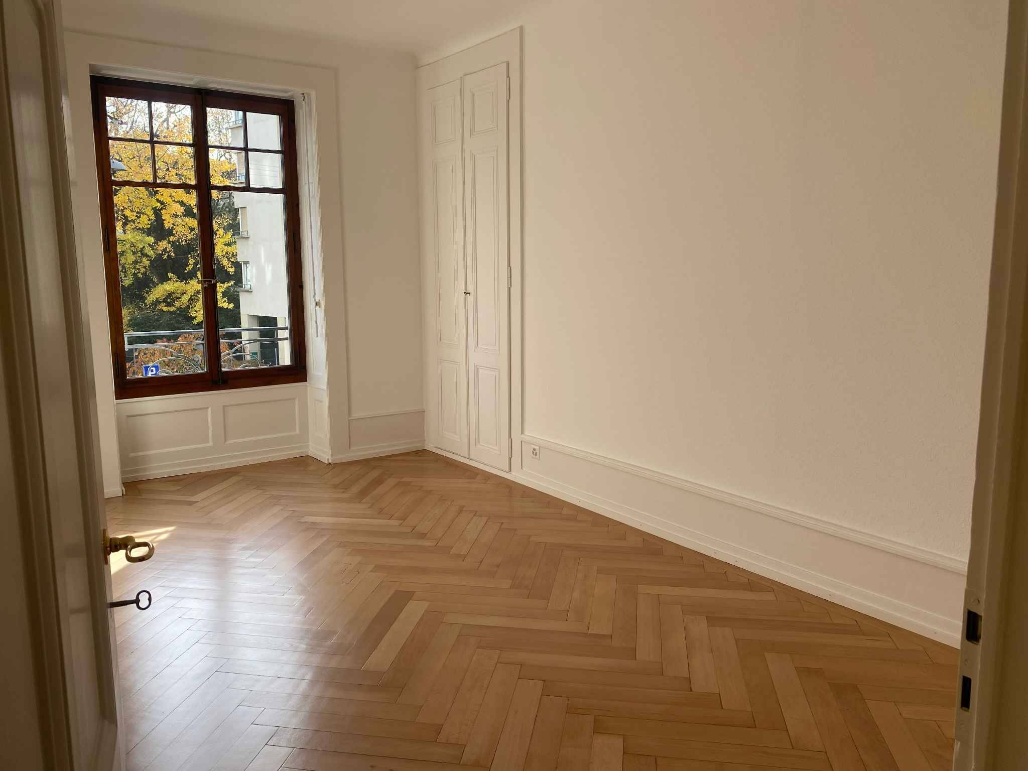 Situé au premier étage d'un immeuble parfaitement entretenu dans le quartier prisé des Délices, cet appartement lumineux de 6 pièces, d'une superficie d'environ 122 m², a été entièrement rénové avec soin.
