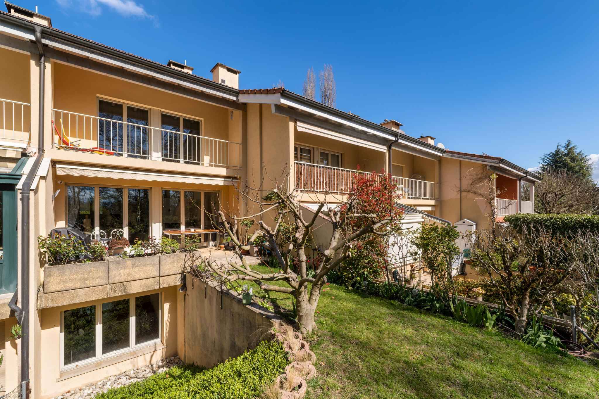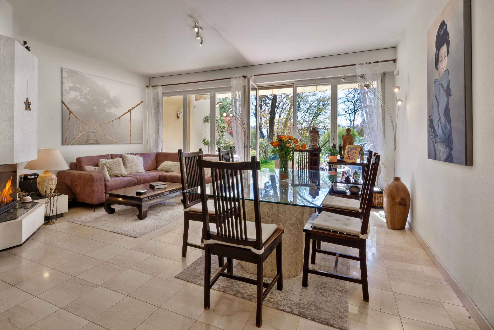 Set in a highly sought-after residential environment, the property benefits from a peaceful village atmosphere while being only a few minutes from Geneva city centre and the shores of Lake Geneva, offering an exceptional balance between tranquillity and accessibility.