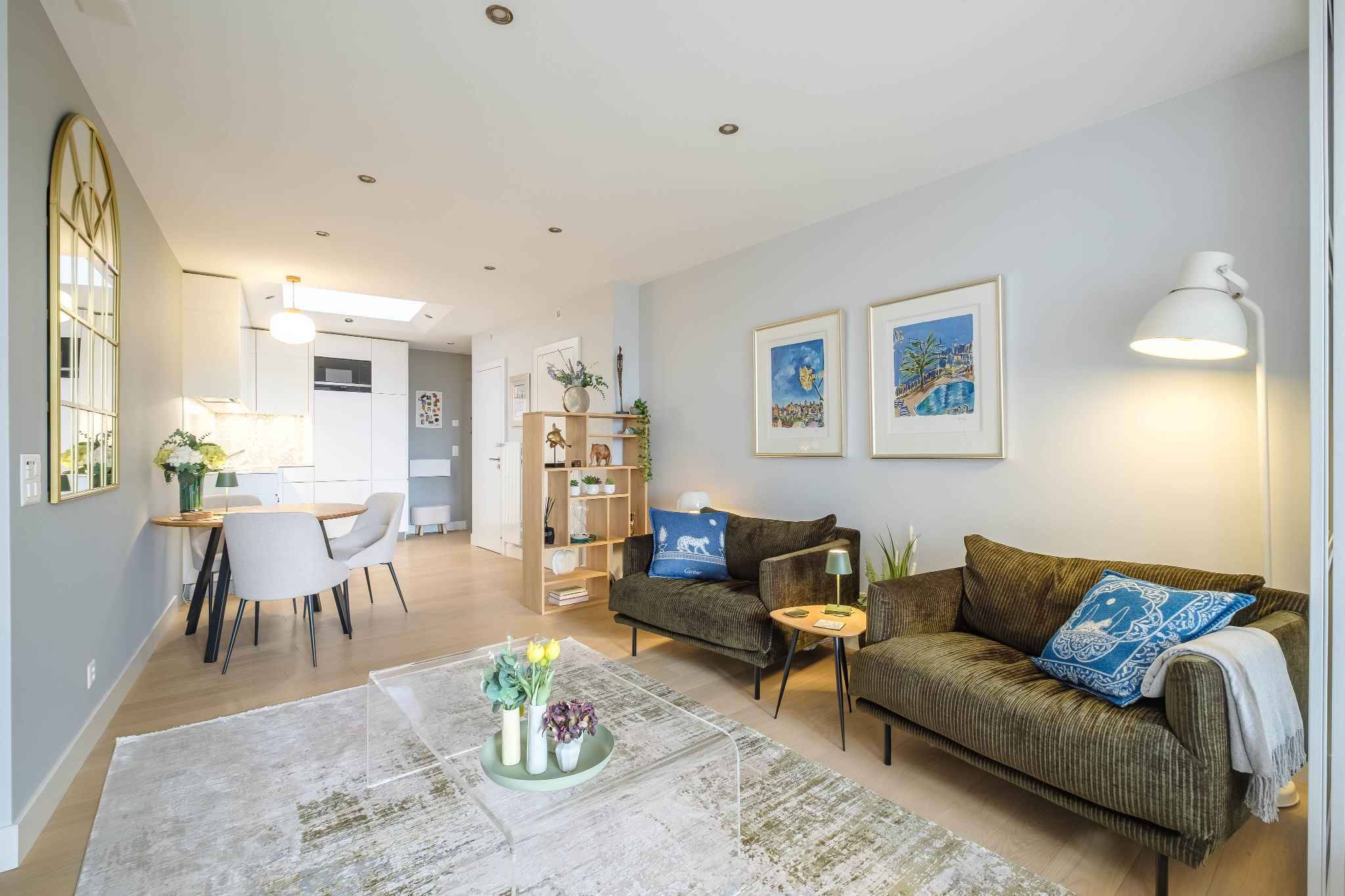The apartment is equipped with electric blinds and electric sun awnings. The building further offers a lift, videophone system, bicycle storage, stroller room and underground visitor parking.