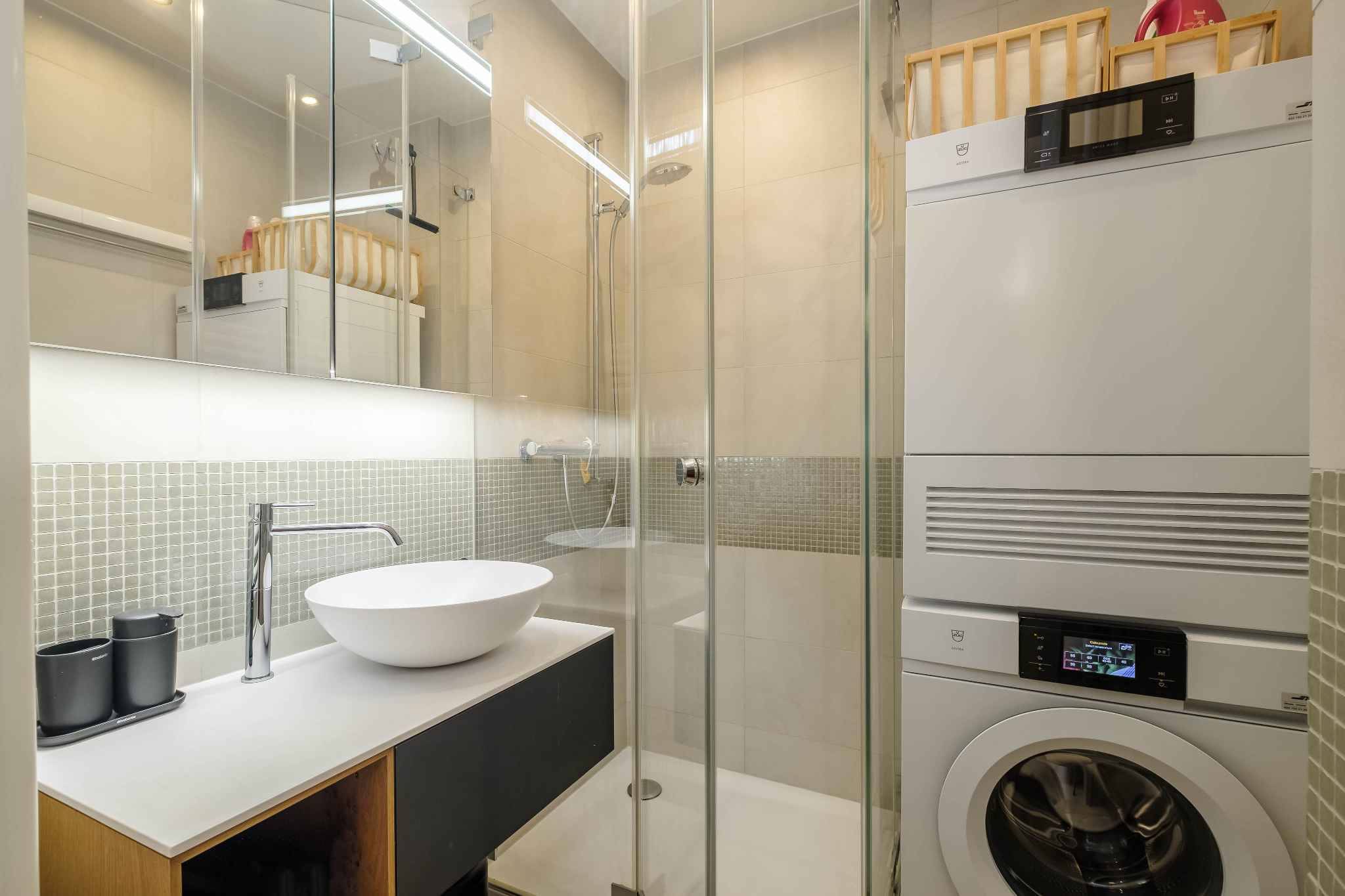 The night area comprises built-in storage, a bedroom with fitted wardrobe, a master suite with en-suite bathroom and WC, as well as a shower room with WC and a dedicated laundry space.