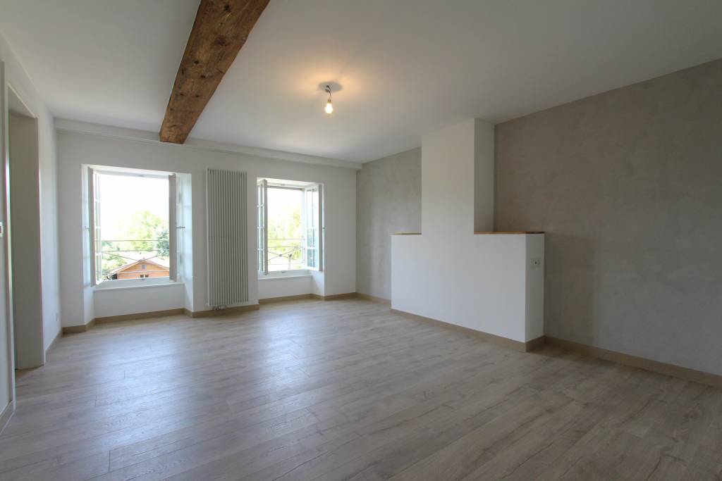 Magnifique appartement de 5 pièces d’une surface de 109 m², entièrement rénové en 2017, situé dans une bâtisse de caractère au cœur du charmant village de Cartigny.