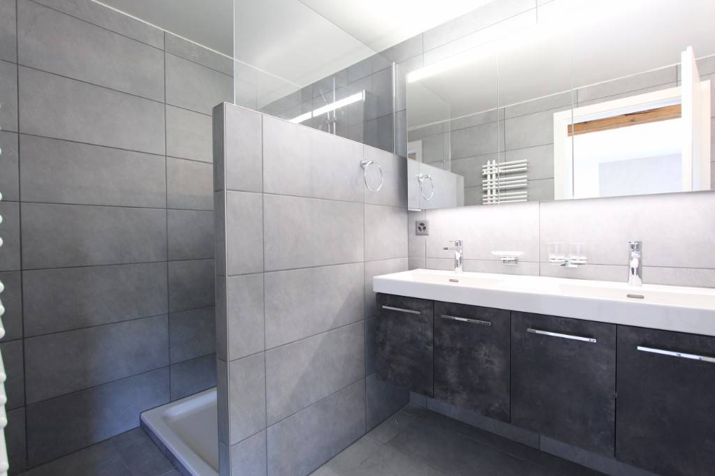 Il se compose d’une cuisine entièrement équipée, ouverte sur le séjour, d’une salle de bains avec WC et emplacement pour colonne de lavage, ainsi que d’un couloir agrémenté de grandes armoires encastrées. L’espace nuit offre une chambre parentale de 22 m² avec rangements intégrés et salle de douche attenante avec WC et double vasque, ainsi que deux chambres supplémentaires de 13 m² et 21 m².