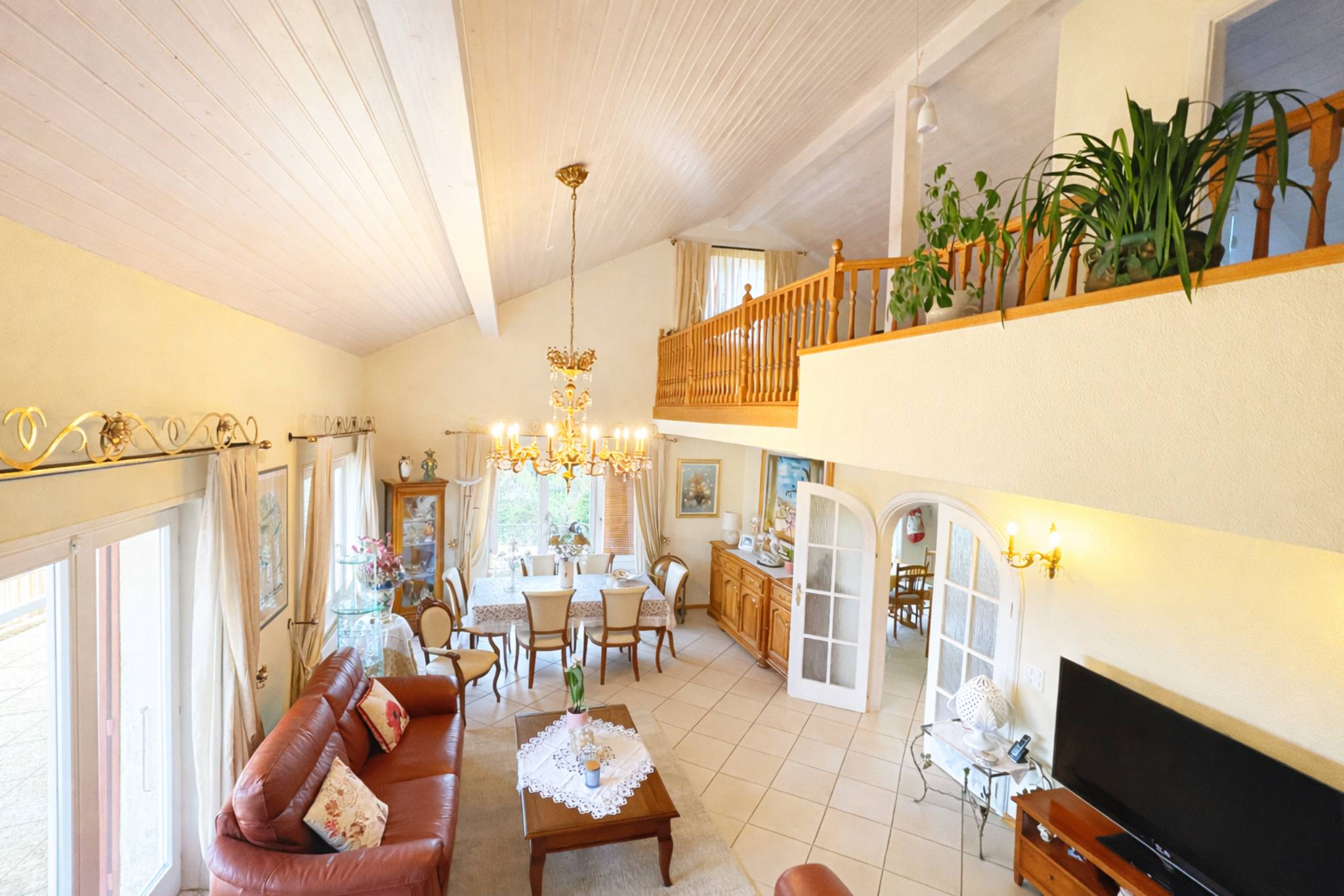 Il est composé d'une belle entrée avec salle de douche/wc/lavabo, d'un magnifique séjour avec cheminée avec accès à une grande terrasse orientée sud, d'une belle cuisine fermée totalement agencée, d'une salle à manger, d'une salle de bains avec baignoire et de 2 grandes chambres à coucher.