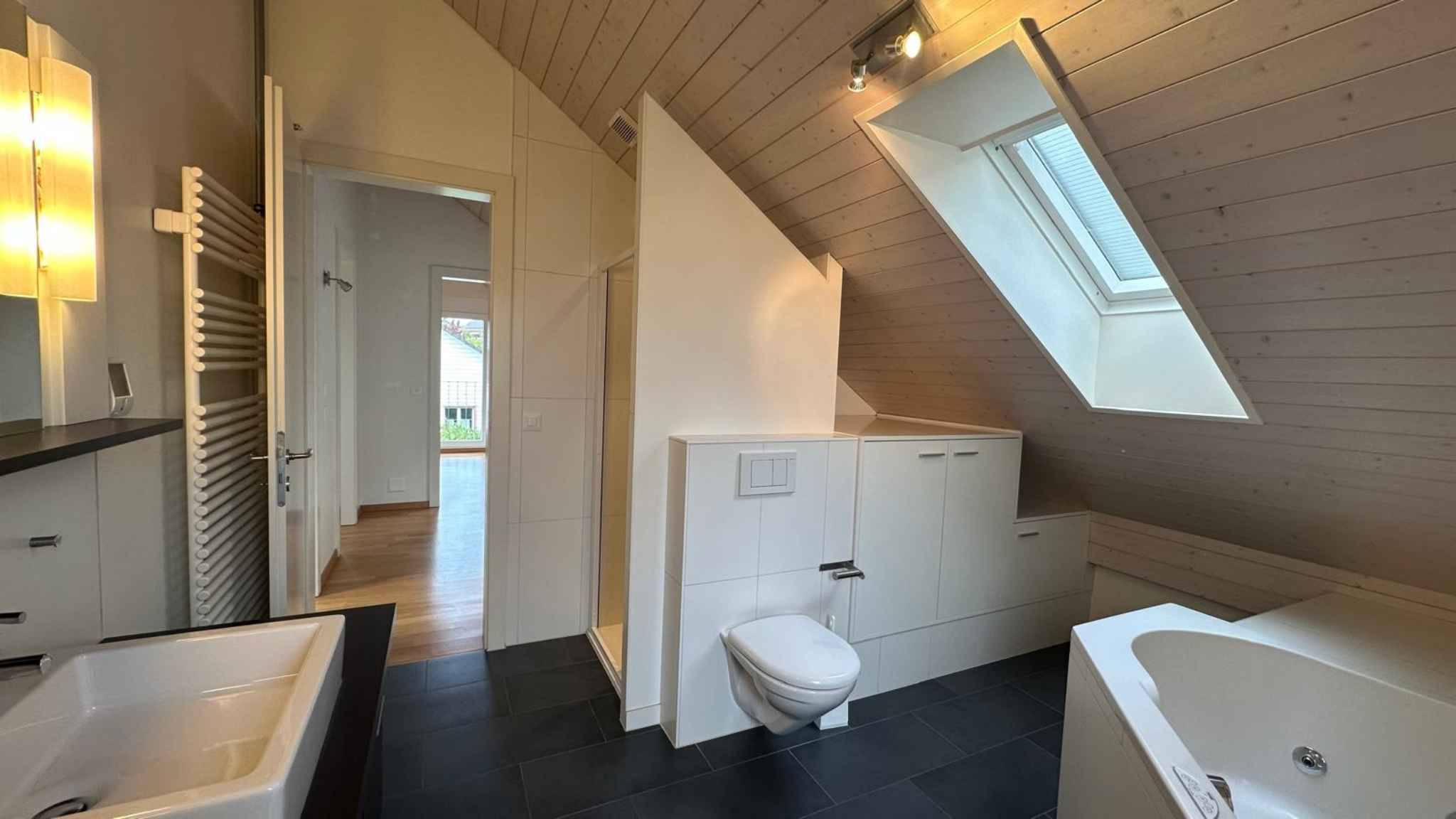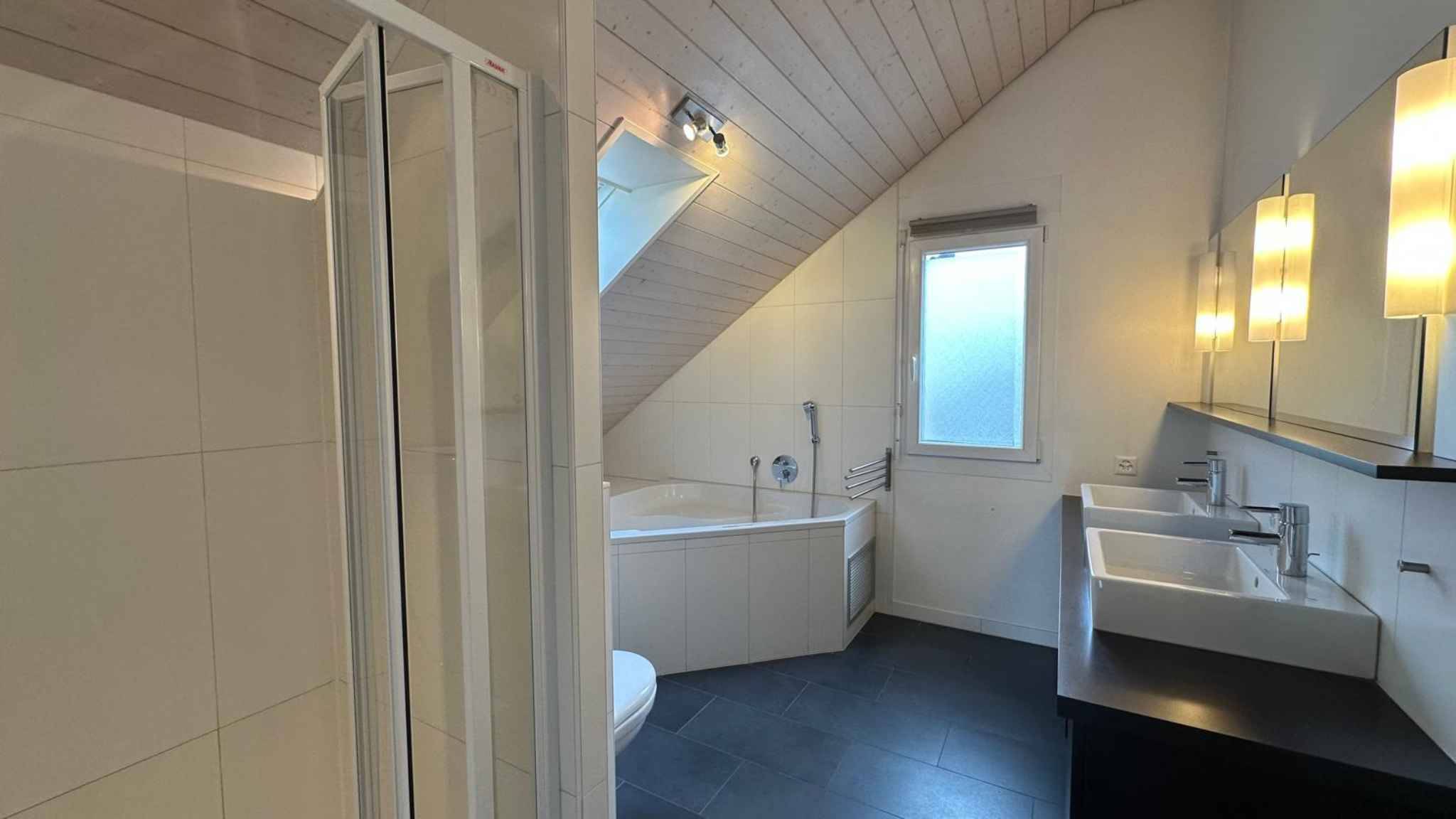 A l'étage 3 chambres à coucher en parquet, dont une chambre avec salle de bains/baignoire/jacuzzi , douche et wc.